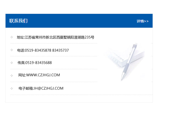 傳真:0519-83435688    郵編:213135    網址:WWW.czjhgj_com.yongyedg.com    電子郵箱:JH@czjhgj_com.yongyedg.com